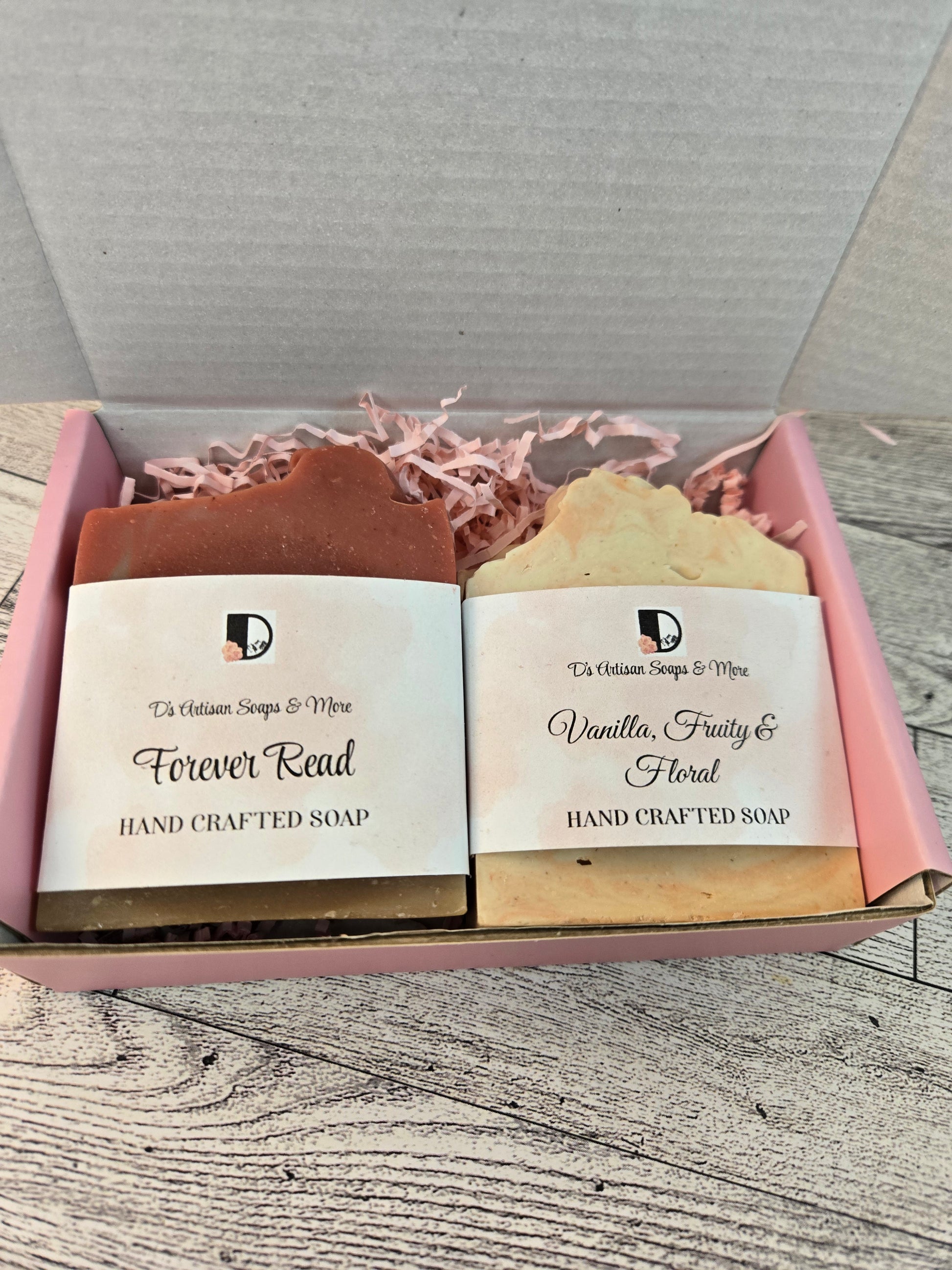 Floral soap set, Delight someone special with this curated collection of two luxurious goat milk soaps, each infused with delicate floral botanicals. Formulated with goat milk, these artisan bars gently cleanse the skin and leave a light, feminine scent. It includes our Forever Read and Vanilla, Fruity & Floral bar soap.