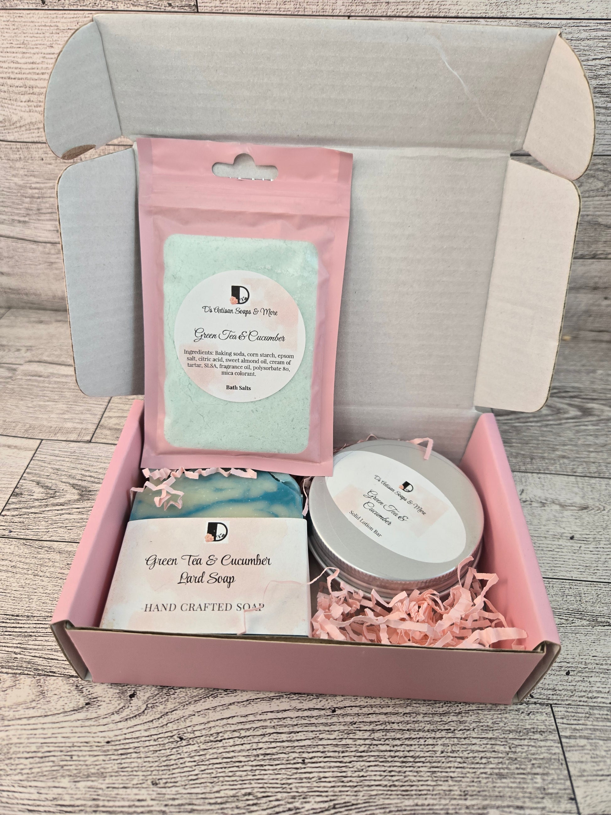 The first curated collection combines our bestselling Green Tea & Cucumber soap, luxurious salts, and nourishing lotion. This aromatic trio has earned devoted customer loyalty for its refreshing, sophisticated appeal and skin-pampering benefits.
